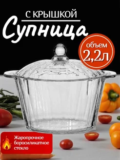 Кастрюля стеклянная термостойкая с крышкой 2,2 л