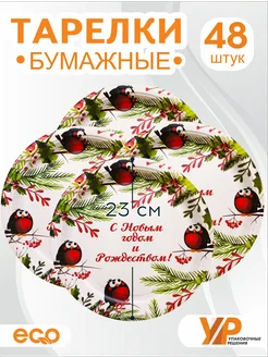 Тарелки одноразовые бумажные новогодние прочные 23 см 48 шт