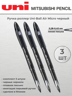 Ручка роллер черный Uni-Ball Air Micro UBA-188M, 0.5 мм, 3шт