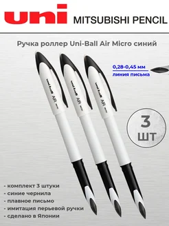 Ручка роллер Uni-Ball Air Micro 0,5мм 3 шт синий