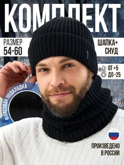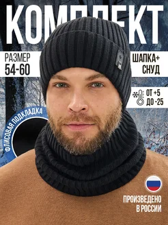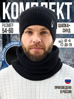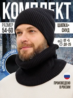 Шапка со снудом зимняя вязаная бини на флисе модная