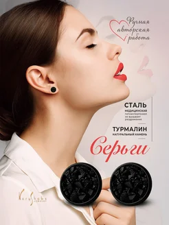 Серьги круглые бижутерия с натуральным камнем блестящие