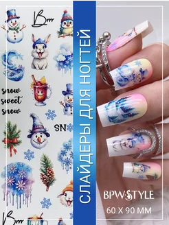 Наклейки для ногтей зимние слайдеры снежинки набор