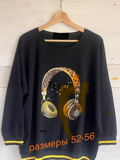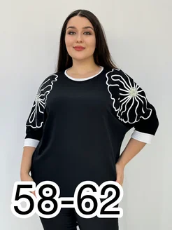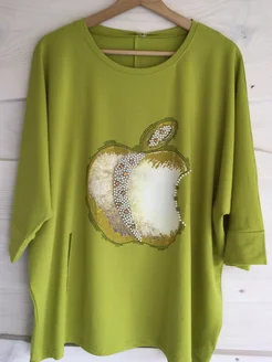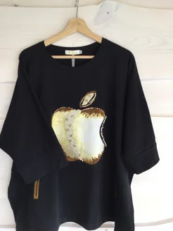 Футболка яблоко черная с рукавом 3 4 большого размера