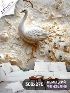 Фреска на стену 3D Барельеф павлина среди цветов 300х270