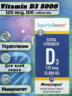 Витамин D3, 5000 IU 125mcg, 100 таблеток, высокоэффективный