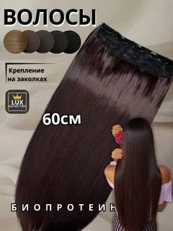 Накладные волосы на заколках темно коричневый холодный