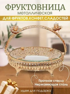 Фруктовница металлическая со стеклянным блюдом с ручкой