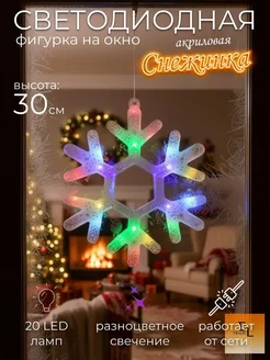 Гирлянда на окно Снежинка акриловая 30 см цветная