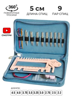 Набор укороченных съемных спиц 5+8 см в синем чехле