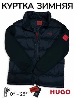 Куртка зимняя Хуго бомбер с вязаными рукавами