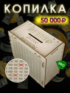 Копилка для денег деревянная 50 000 по номерам с цифрами