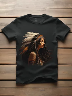 Футболка хлопковая с принтом оверсайз Индеец Девушка