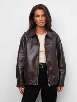 Куртка женская кожа оверсайз на молнии с воротником