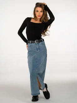 Юбка джинсовая миди с разрезом спереди