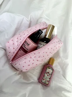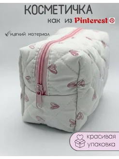 косметичка тканевая мягкая в сердечках пенал дорожная
