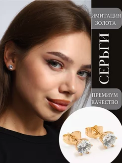 серьги гвоздики бижутерия пусеты с фианитом под золото