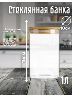 Стеклянная банка с бамбуковой крышкой 15*10 см