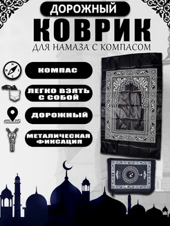 Дорожный коврик для намаза с компасом молитвенный намазлык