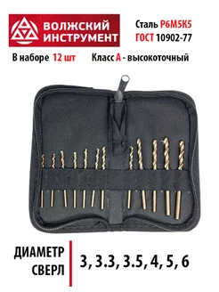 Набор сверл по металлу (3-6мм), 12шт. Р6М5К5