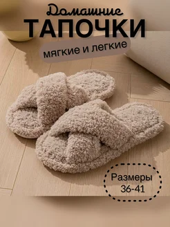 Открытые плюшевые домашние тапочки женские