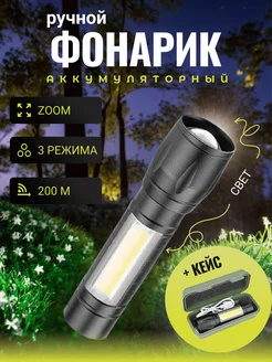 Фонарик аккумуляторный ручной светодиодный