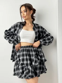 Костюм в клетку юбка и рубашка