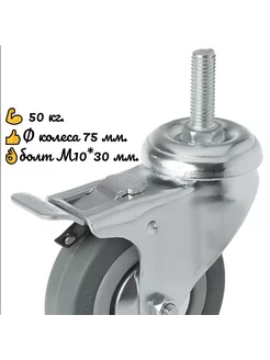 Колесо аппаратное поворотное с болтом и тормозом 75 мм