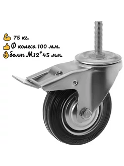 Колесо промышленное поворот с болтом и тормоз 100 мм, 2 шт