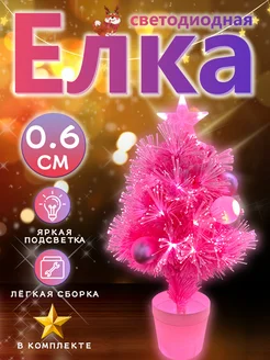 Елка искусственная led светодиодная розовая 60 см