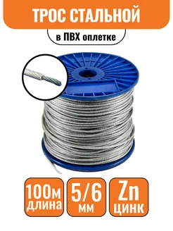 Трос стальной в ПВХ оплетке 5 6мм 100м DIN 3055