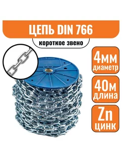 Цепь короткое звено 4мм 40м DIN 766 короткозвенная