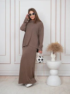 Леопардовый костюм со стразами рубашка и юбка шоко