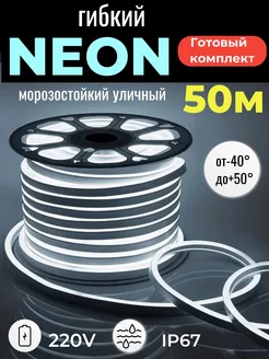Светодиодный неон LEDлента 50м, Холодный свет 6K 220V, IP67