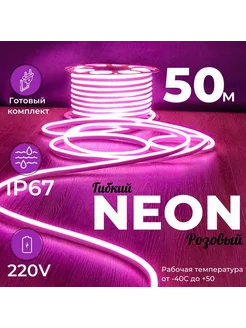 Неоновая светодиодная лента розовая 50м,220V 9.6W m, IP67