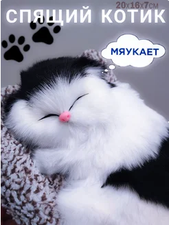 Спящий котик со звуком мягкая игрушка