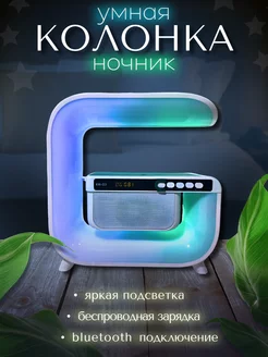 Блютуз колонка ночник с беспроводной зарядкой и радио