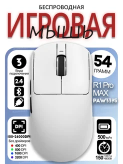 Игровая мышь беспроводная R1 ProMAX PAW3395,3200DPI,Белый