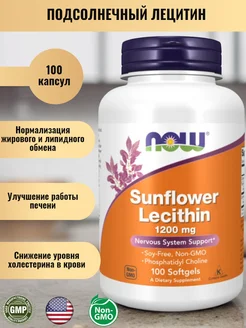 Sunflower lecithin 1200 mg NOW подсолнечный лецитин