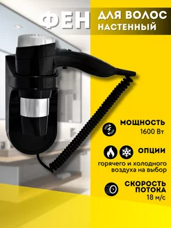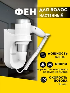 Настенный фен для волос 1.6 кВт холодный воздух А00ФДВ103