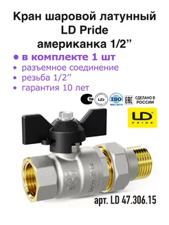 Кран шаровой американка 1 2" латунный ду15мм 1 шт