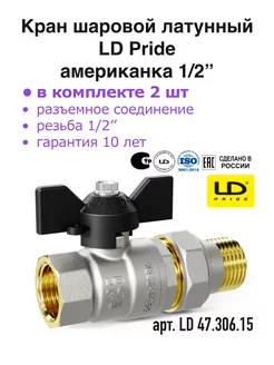Кран шаровой американка 1 2" латунный ду15мм 2 шт