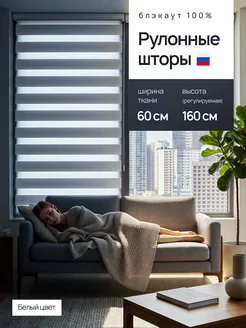 Рулонная штора блэкаут 160х60 см белая с цепочкой