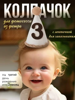 Колпачок детский на 3 месяца года для фотосессии из фетра