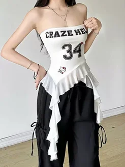 Футболка кроп-топ с цифрами укороченная Streetwear y2k