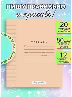 Тетради в редкую косую линейку, 12 л, 10 шт