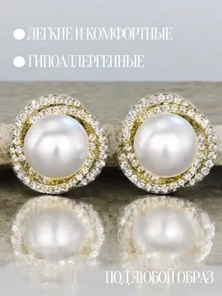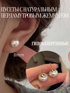 Серьги гвоздики с жемчугом пусеты с перламутром
