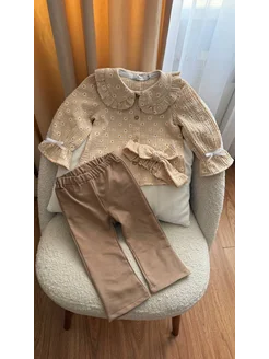 Костюм с блузкой в горошек и брюками