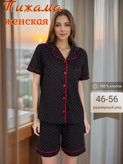 Пижама с шортами и рубашкой в горошек