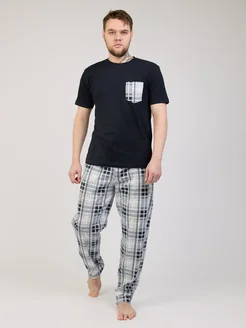 Пижама со штанами в клетку и футболкой